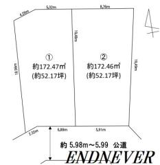 | 土地面積 | ①約172.47㎡(約52.17坪) ②約172.47㎡(約52.17坪) |